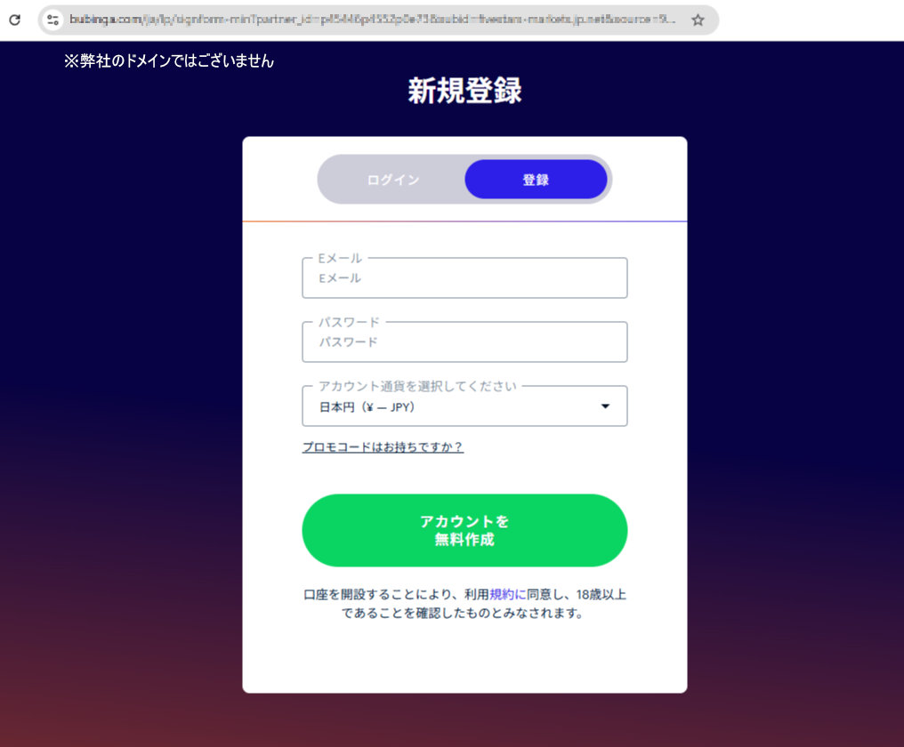 ログインや口座開設を行う際は、必ず公式ドメインであることをご確認のうえ